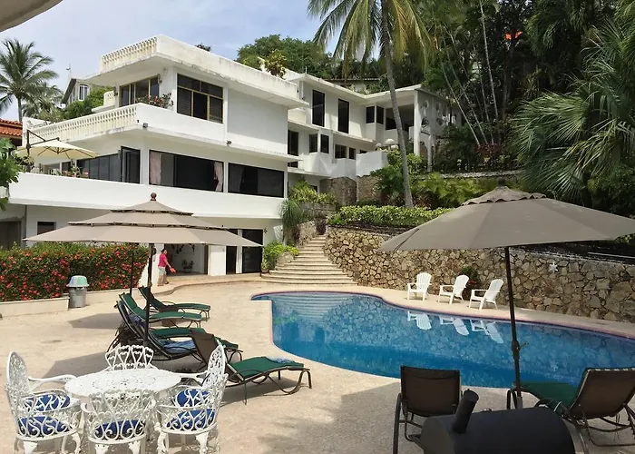 La Villa Palmitas acogedor departamento nivel piscina gigante jardines Acapulco está situada a tan solo 1 km de la Sinfonía del Mar y permite a sus huéspedes practicar esquí. Situada en el barrio Acapulco Tradicional, esta villa ofrece una piscina con un bar.